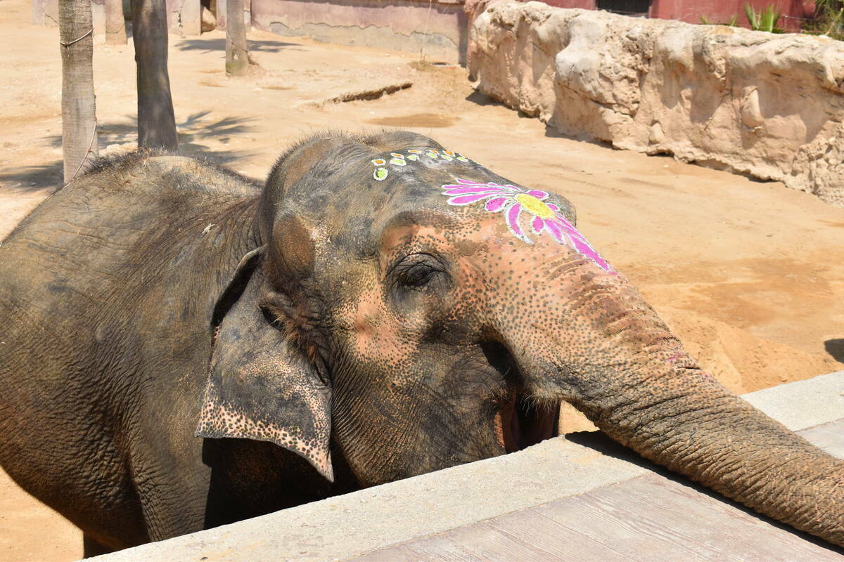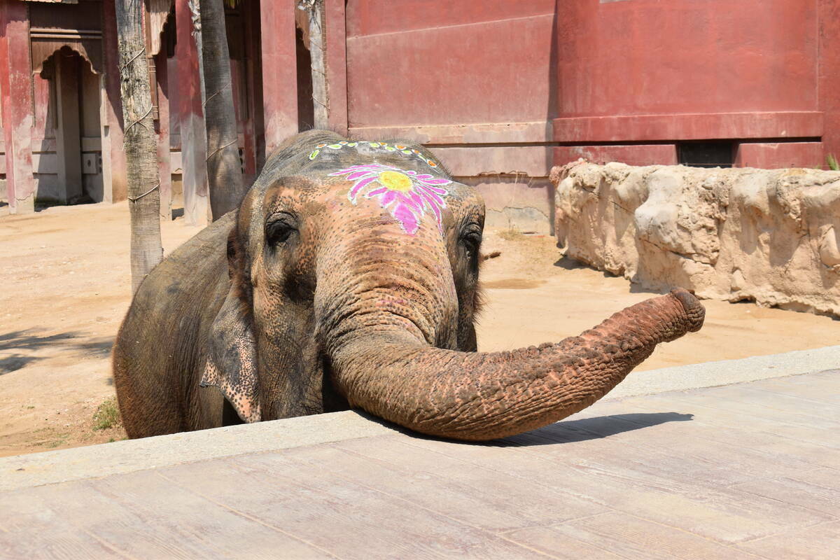 La jornada festiva ha comenzado a las 11.00 horas, cuando los asistentes han sido recibidos con el tradicional bindi o tilak en la frente, símbolo cultural de protección y sabiduría. A continuación, un desfile de músicos y bailarinas ataviadas con saris ha recorrido el parque hasta la pradera de elefantes, donde Petita y su inseparable compañera Kaiso han recibido una ofrenda de frutas y verduras mientras sonaba susurrado el tradicional “cumpleaños feliz”.