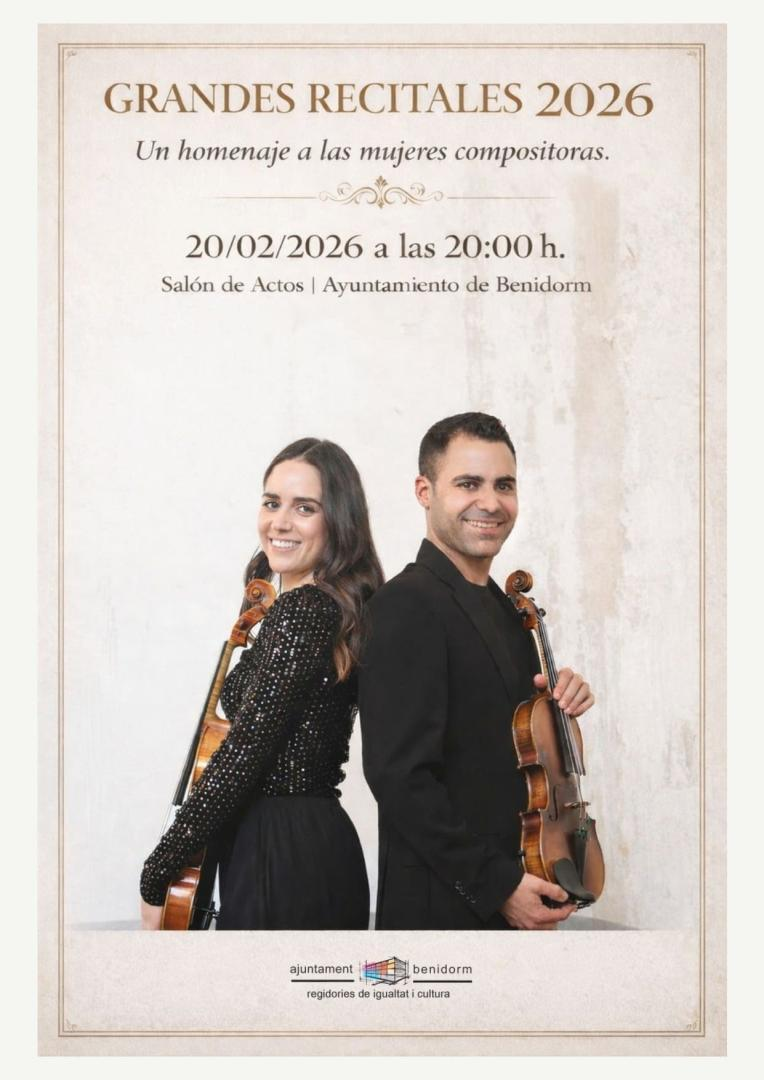 20 de febrero de 2026. 20:00 h. Salón de Actos del Ayuntamiento de Benidorm. “Un homenaje a las mujeres compositoras”.