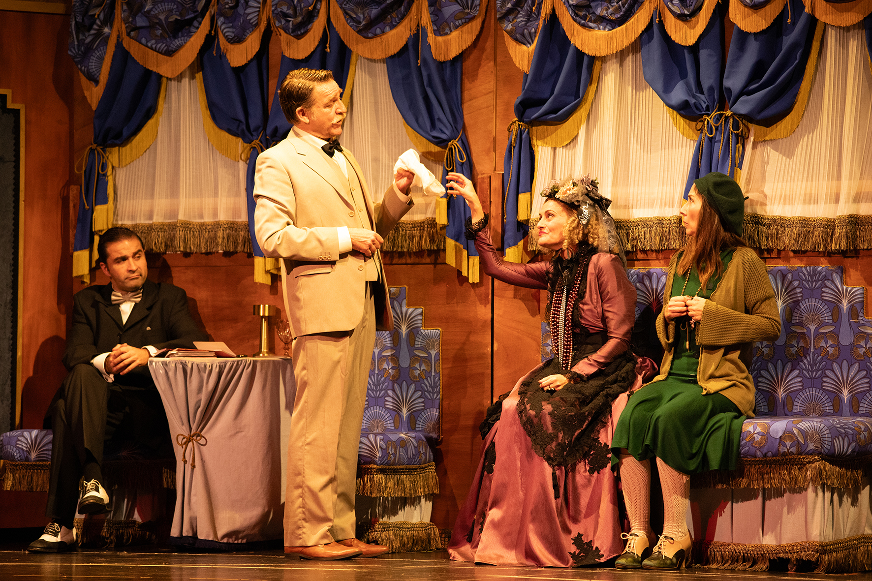 Este montaje teatral de “Asesinato en el Orient Express” cuenta con 11 actores y actrices: Juanjo Artero, Jaime Vicedo, Helena Font, Ricardo Saiz, Juanan Lucena, Paco Pellicer, Mónica Zamora, Carmen Higueras, Candela Granell, Estela Muñoz y Fidel David. Intérpretes perfectamente caracterizados y con una extraordinaria y cuidada puesta en escena, para trasladar al espectador a la época de los años “30”.