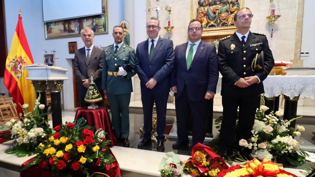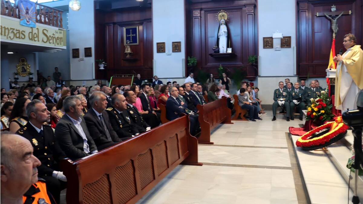 El alcalde de la ciudad, Toni Pérez, y el concejal de Seguridad Ciudadana, Jesús Carrobles, han acompañado a los agentes del Destacamento de Tráfico de Benidorm y a sus familias en una misa que se ha desarrollado al mediodía en la iglesia de Nuestra Señora de la Almudena, y en la que también han participado otros miembros de la Corporación local, entre ellos el también diputado autonómico José Ramón González de Zárate. También han asistido el senador Agustín Almodóbar; miembros de otros Cuerpos y Fuerzas de Seguridad, como el comisario de la Policía Nacional, Luis Manuel Sánchez, o el intendente de la Policía Local, Luis Martín Arévalo; así como el nuevo jefe local del Protección Civil, José Vicente Fuster. Igualmente, han acudido representantes de numerosas entidades festeras, sociales y religiosas del municipio, como las reinas de las Festes Majors Patronals, Paula Pascual Sánchez y Aitana Pérez Guitiérrez; así como vecinos del barrio Foietes-Colonia Madrid, muy vinculados a la Benemérita.