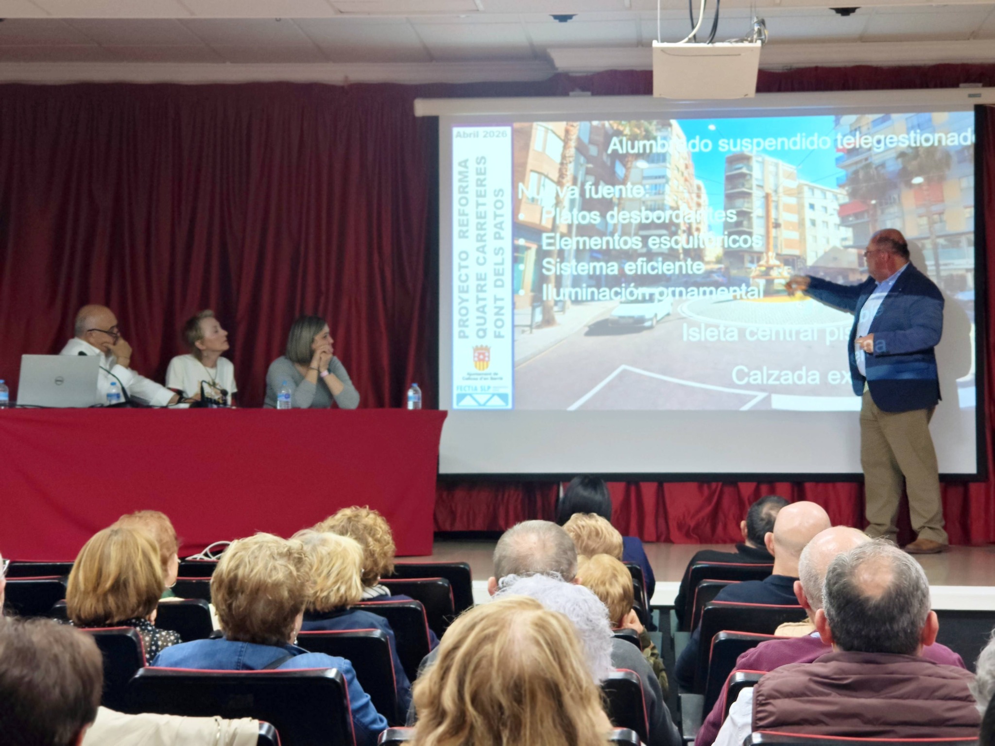 El Ayuntamiento de Callosa d’en Sarrià ha presentado en la tarde de este martes en la Casa de Cultura, el proyecto de remodelación integral de la emblemática intersección de las Cuatro Carreteras, conocida popularmente como la Font dels Patos, en un acto abierto a la ciudadanía que ha contado con una destacada participación vecinal.