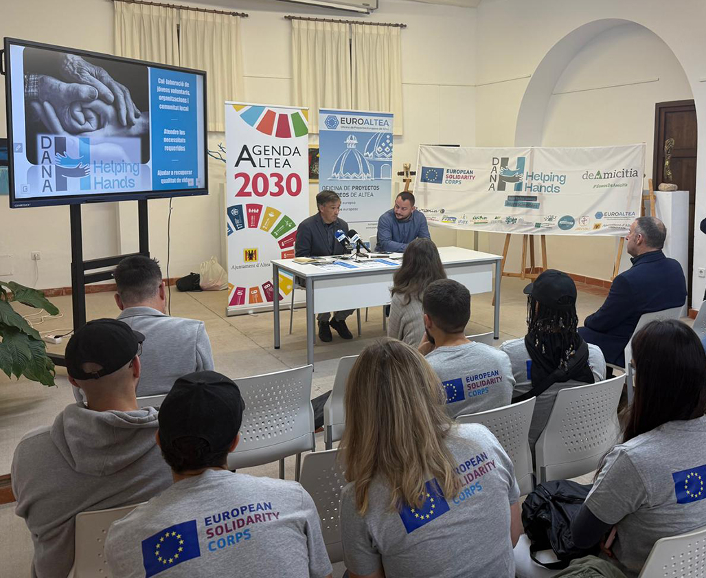 Altea, 18 de noviembre de 2025. En la mañana de hoy, la casa de Cultura de Altea ha sido el escenario elegido para presentar el proyecto europeo ‘Dana HH’ –Dana Helping Hands- liderado por la ONG De Amicitia en colaboración con el ayuntamiento de Altea y 9 ONG europeas. Un proyecto que se acaba de poner en marcha y cuyo objetivo es implicar a la juventud europea en la recuperación de las poblaciones afectadas por la Dana del 29 de octubre del pasado año.