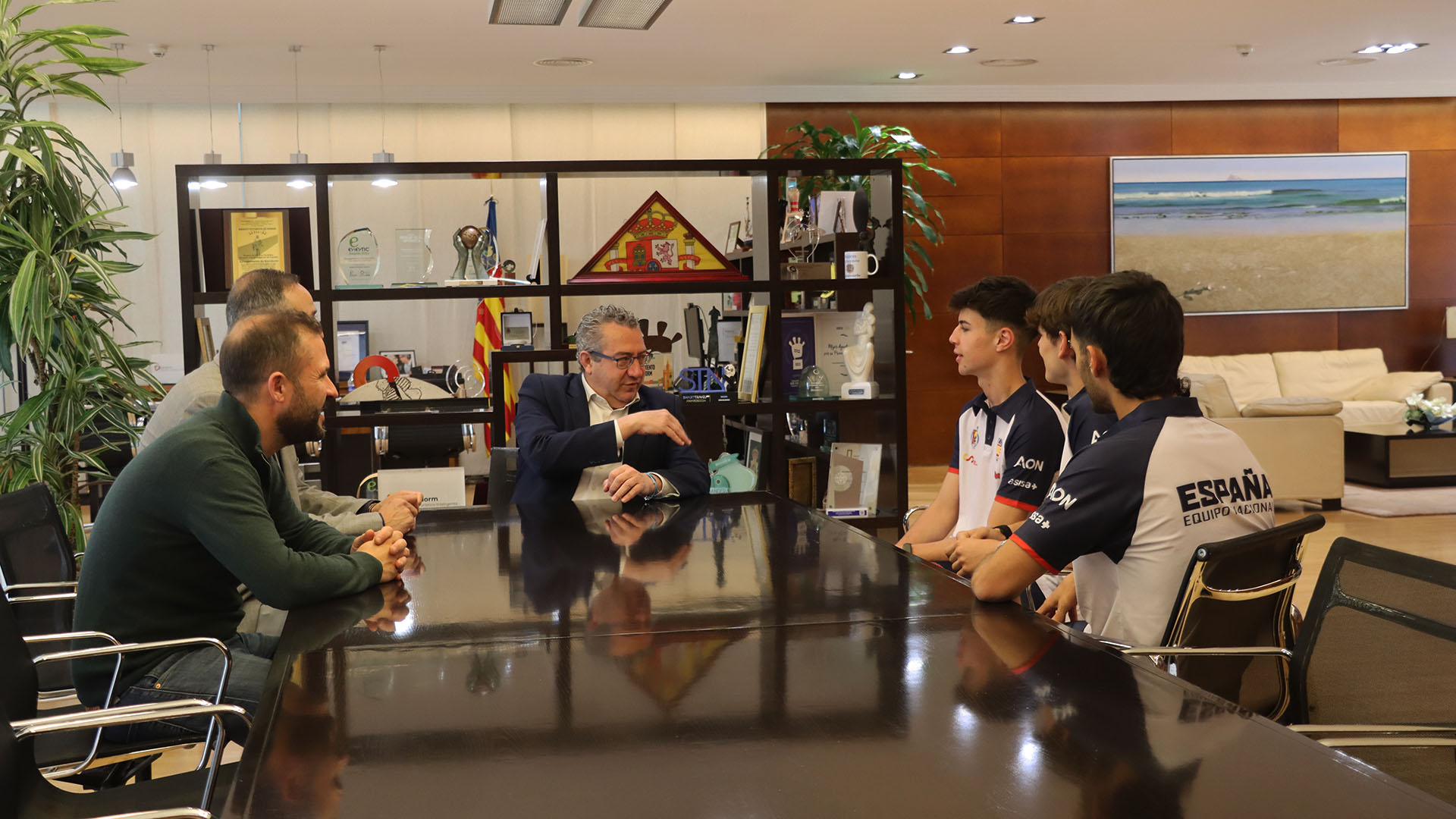 Toni Pérez ha deseado a los tres representantes del club benidormense el mayor de los éxitos en la competición y les ha hecho entrega de unas camisetas promocionales de la ciudad.