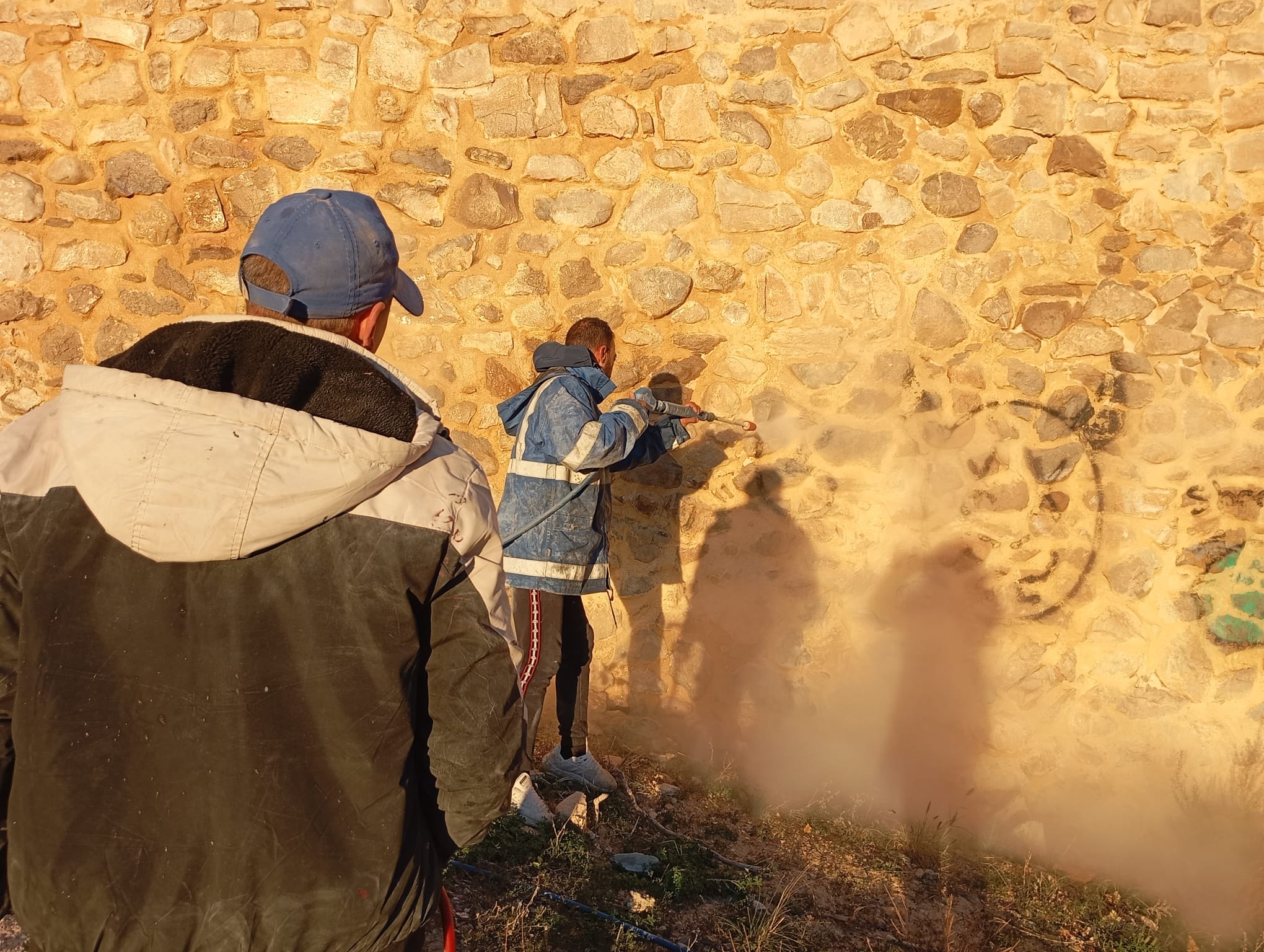 El procedimiento realizado por la mercantil Lacados y Arenados Galbañ, S.L.U. ha consistido en la proyección de agua a alta presión a 80 grados y vapor a 180 grados sobre los muros de mampostería (piedras calizas irregulares), utilizando para ello una innovadora maquinaria con tecnología de última generación, que ha permitido eliminar los grafitis sin dañar en modo alguno la estructura de los paramentos del puente.
