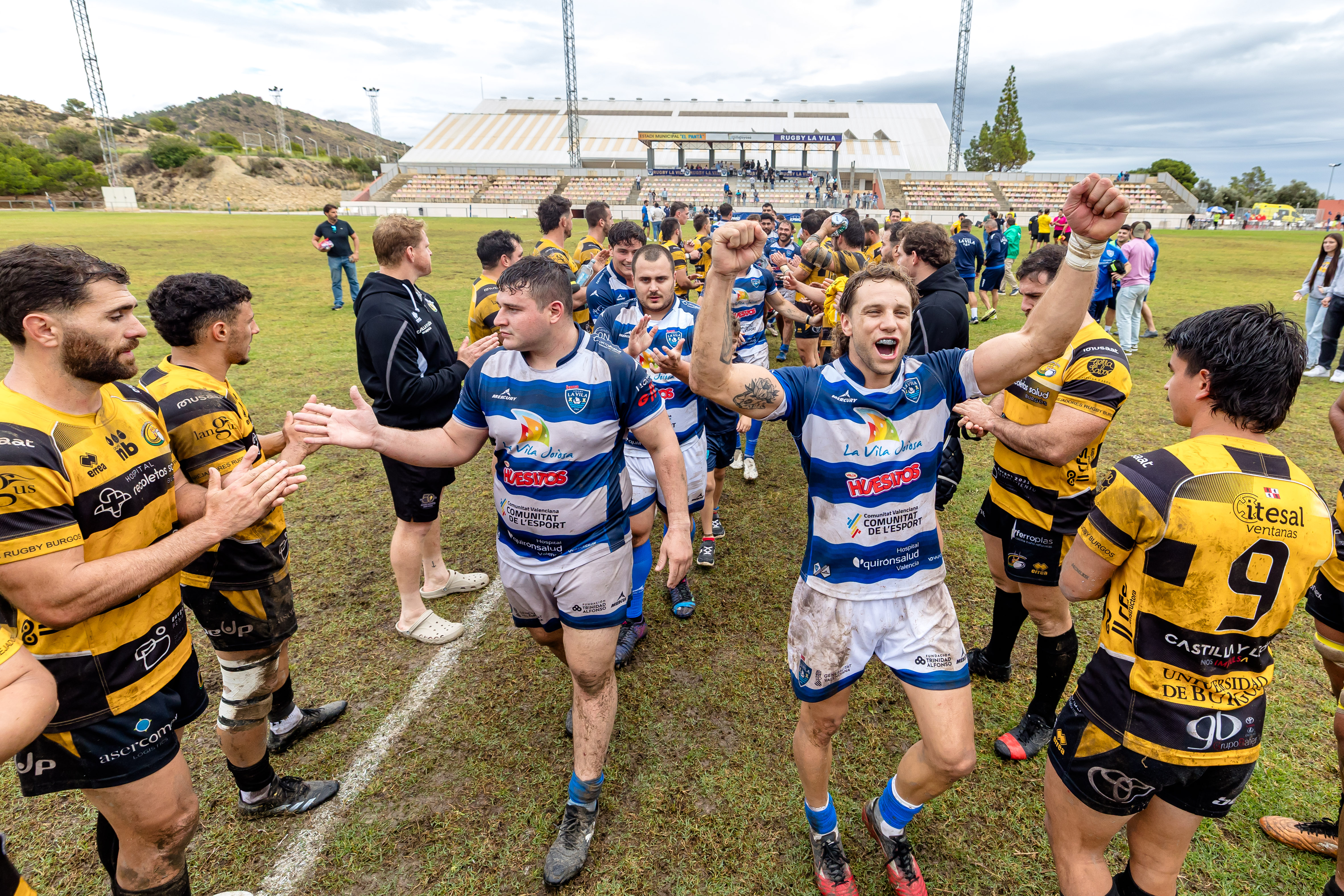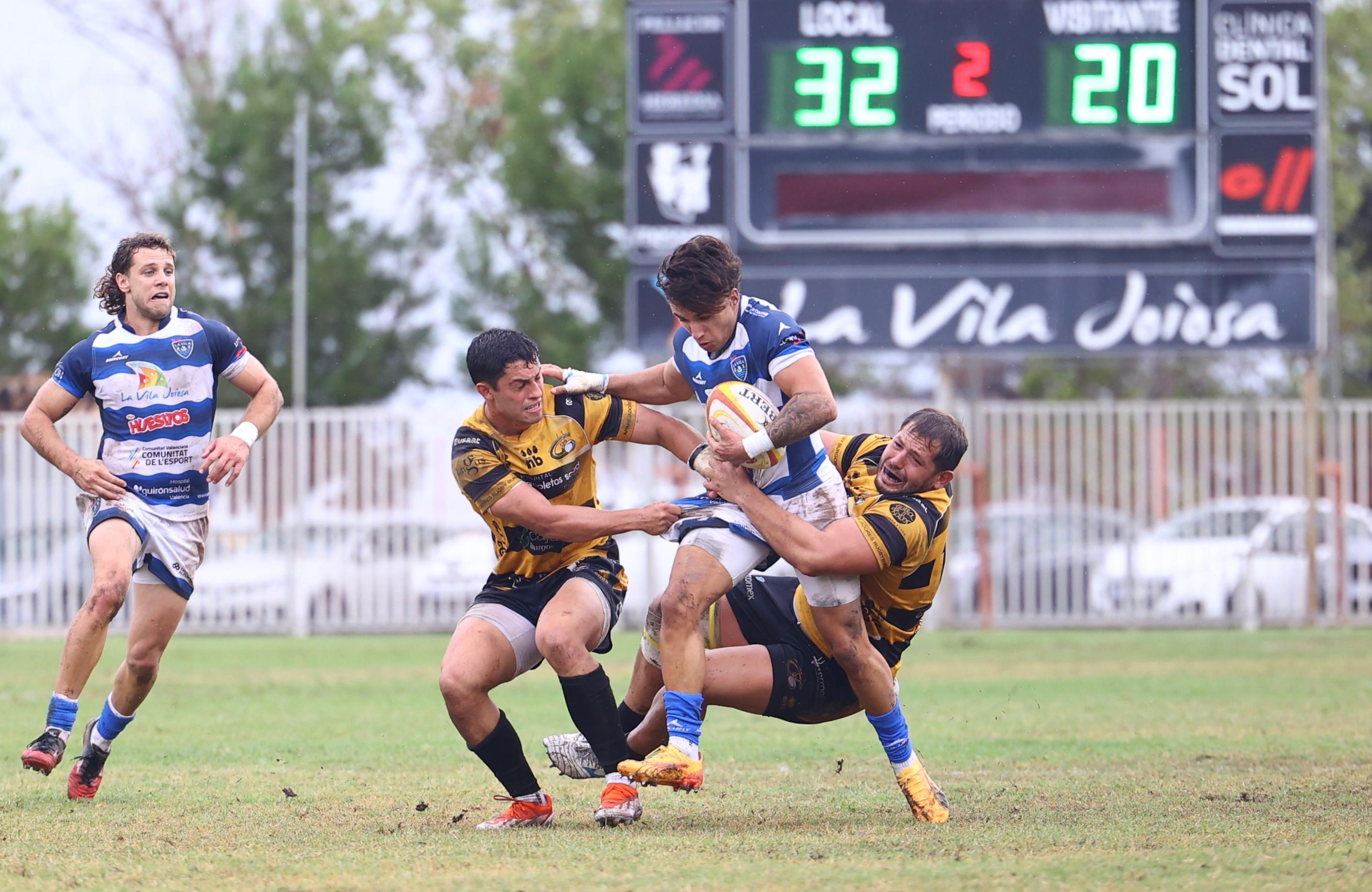 El Huesitos La Vila sumó una nueva victoria en el Pantano que le sitúa segundo en la clasificación de la máxima categoría. El equipo que dirige Falu Quirelli derrotó a un Recoletas Burgos que se topó con un rival intenso, acertado y empujado por la afición. Fue un partido brillante del Huesitos sobre barro tras la lluvia que dificultaba el juego, pero no fue obstáculo para volver a sacar una gran versión. Adelantó Tomás Etxeverry al conjunto local con un ensayo completado posteriormente por un infalible Güemes. El 8-0 inicial cargó de confianza en una primera parte de buen juego que finalizó 15-7 tras otro ensayo de Montoya. La afición disfrutaba de un encuentro hasta el momento igualado. Tras el descanso, “Oveja” Demergasso, MVP del partido, anota un ensayo completado por Güemes que puso la primera ventaja importante para el Huesitos, que pasó a dominar el encuentro con solvencia. El Burgos recortó en los últimos instantes pero la victoria ya se festejaba en un Pantano con cada vez más asistencia de público. Falu mostró su satisfacción por la victoria: “Estamos muy contentos, derrotamos a un equipo que peleará por el campeonato. Dimos un paso adelante a nivel de juego, seguimos creciendo gracias al trabajo de todos. Esta victoria nos da mucha tranquilidad, es una liga muy dura y queremos ser cada vez más ambiciosos pero con los pies en la tierra”.
