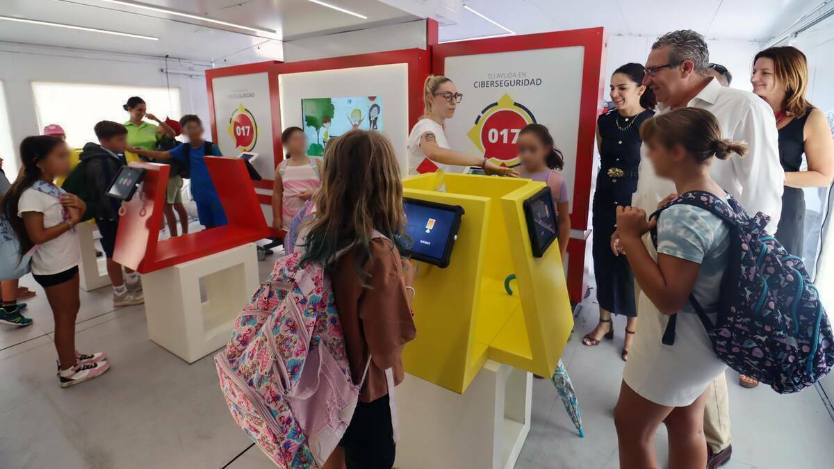 Estos menores han podido disfrutar de los diferentes espacios de los que se compone esta Experiencia Roadshow. Por un lado, en la parte interior, ubicada dentro de un camión desplegable, los visitantes han podido jugar en el área de gamificación con plataformas de entrenamiento y juegos online sobre ciberseguridad. Además, en un espacio expositivo se imparten pequeñas charlas formativas y talleres sobre protección digital y buenas prácticas en internet, una experiencia que se completa con un ‘escape room’ en el que los participantes debían identificar y superar distintos retos y riesgos digitales.