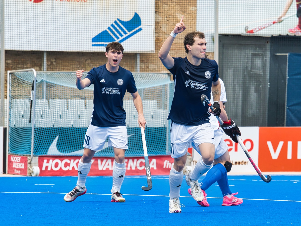 En la categoría masculina, el Carpesa venció 3 a 1 al CH Madrid-Las Rozas en el campo de hockey del poliesportiu Verge del Carme-Beteró. Roberto Bayarri (2) y Diego García marcaron los goles del conjunto blau que recupera la tercera posición, se mantiene en puesto de Final 4 y sueña con el ascenso directo.