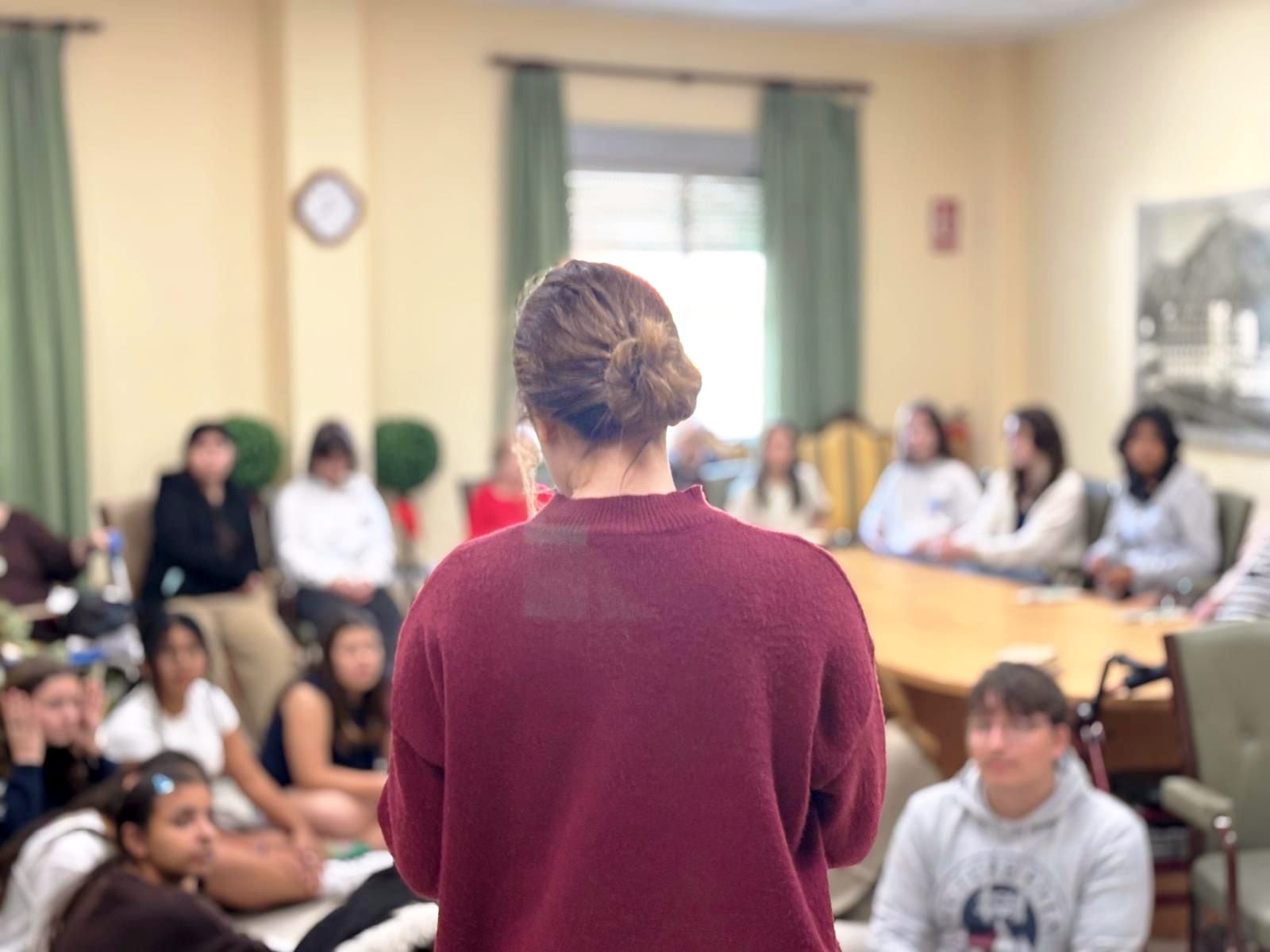 Uno de los momentos más emotivos de este 23 de abril ha sido la lectura de obras por parte de los estudiantes de la ESO galardonados en certámenes externos. Nuestros jóvenes autores han compartido su talento con los residentes del Asilo, creando un espacio de intercambio y respeto mutuo entre generaciones.