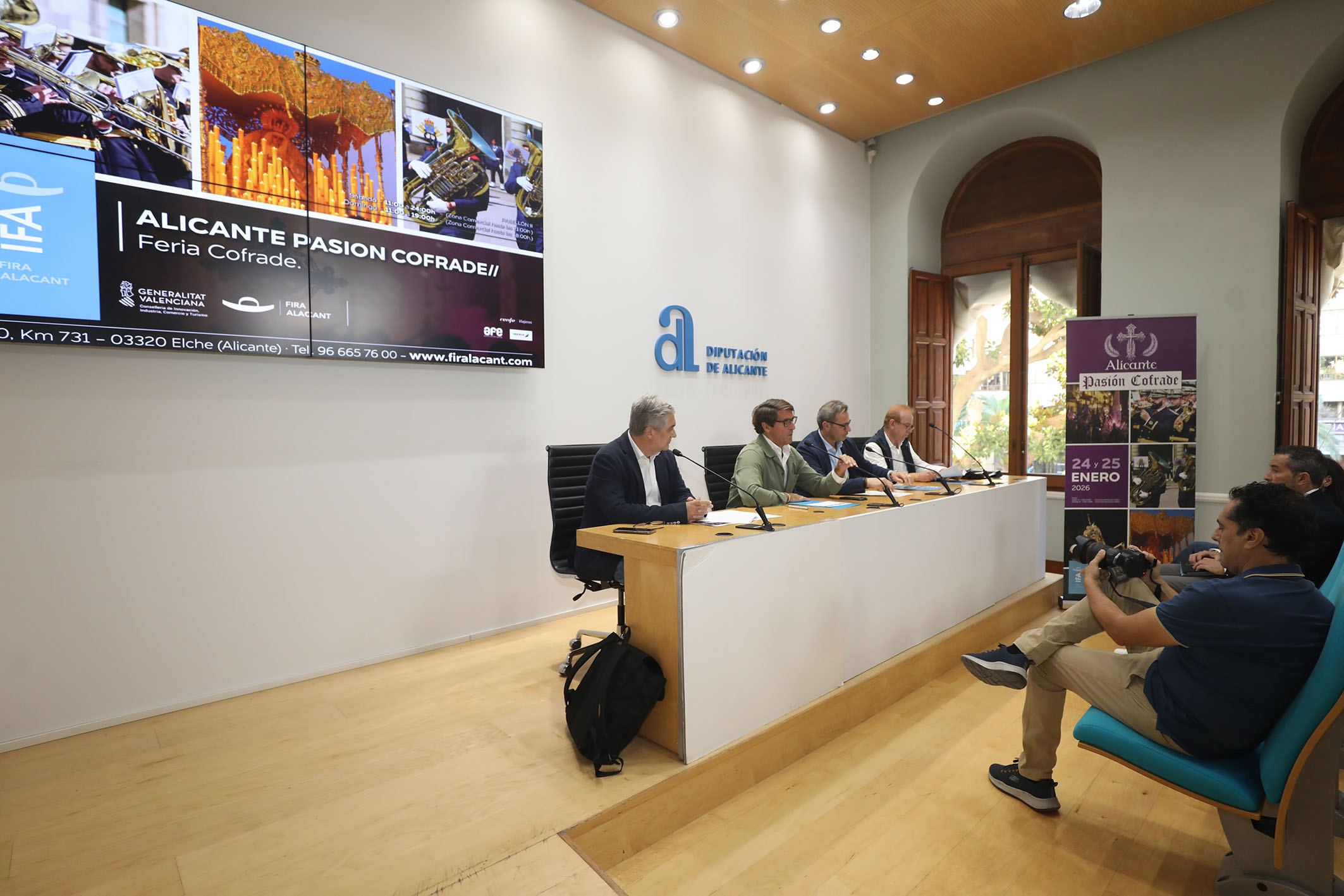 La provincia acogerá en 2026 la primera edición de la feria “Alicante Pasión Cofrade”, un evento con el que se pretende reconocer y proyectar la Semana Santa alicantina, prestando especial atención a la música procesional. Este singular proyecto, que cuenta con el respaldo de la Diputación, se desarrollará los días 24 y 25 de enero en Fira Alacant con la presencia de 22 agrupaciones y bandas de cornetas y tambores, así como con multitud de proveedores de productos y servicios relacionados con esta tradición.