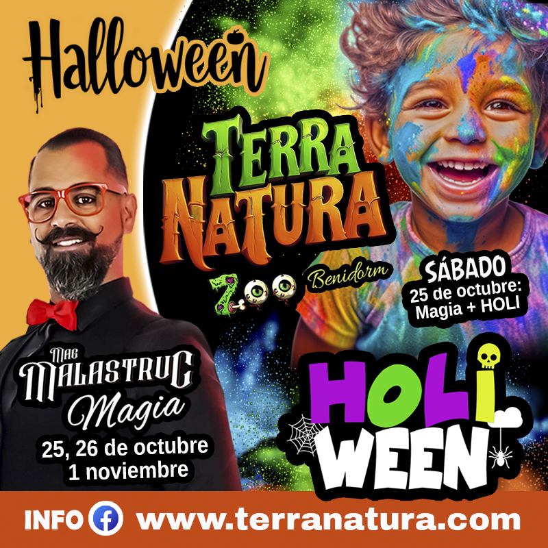 Terra Natura Benidorm está preparado para ofrecer un Halloween familiar único y lleno de color, magia y naturaleza durante los días 25 y 26 de octubre, y el 1 de noviembre. El parque de animales y naturaleza ha diseñado un año más, un programa especial que incluye la exclusiva Fiesta Holiween, espectáculos, talleres y actividades divulgativas pensadas para todas las edades.