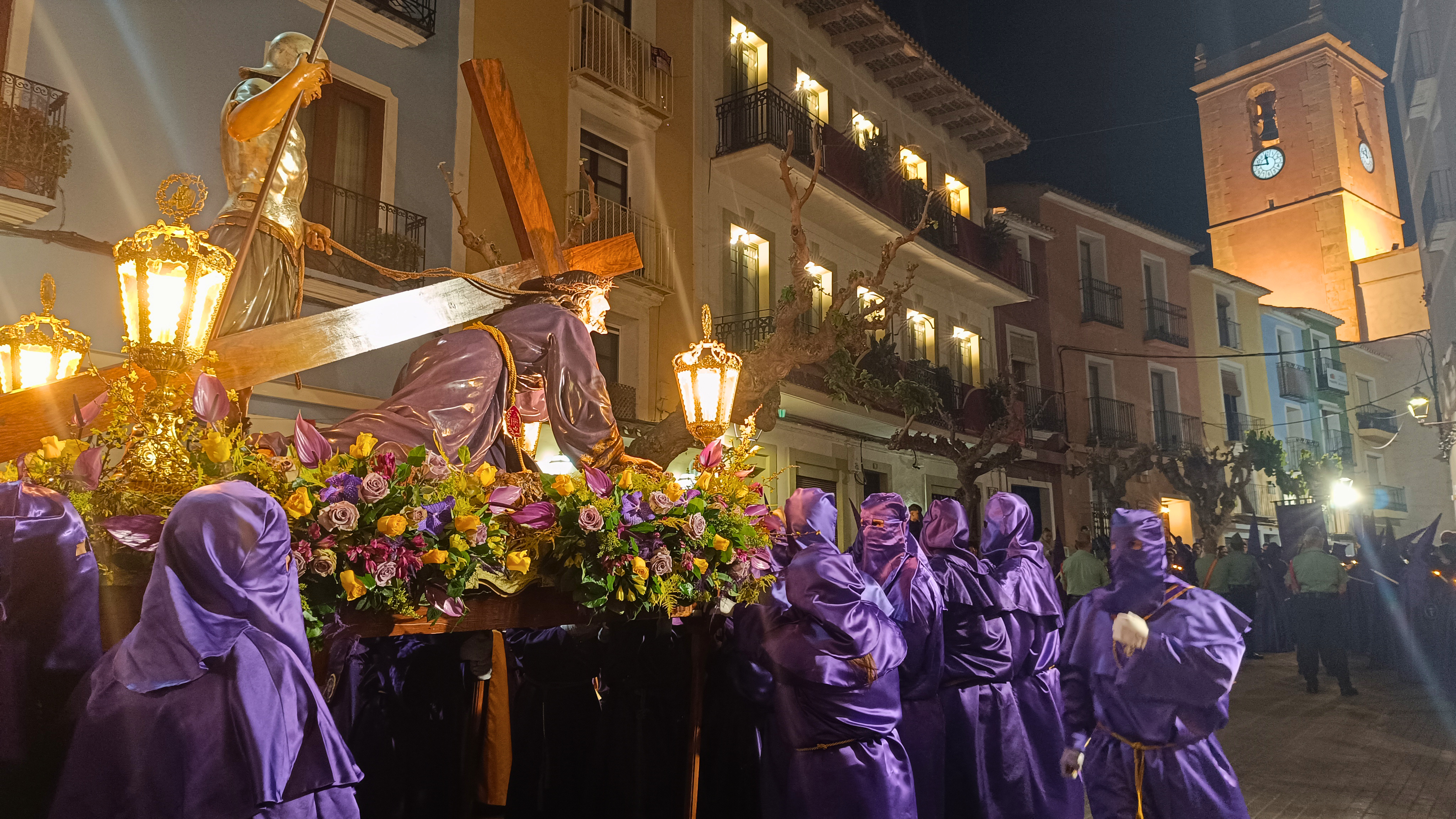 Esta noche de Miércoles Santo, se celebrará la procesión del silencio, en la que la cofradía Cristo de la Fe trasladará la imagen de Jesús en la cruz desde la ermita de San Bartolomé, en el barrio del Pati Fosc, hasta la iglesia de Nuestra Señora de la Asunción, a lo largo de un recorrido por las calles del centro urbano a oscuras.