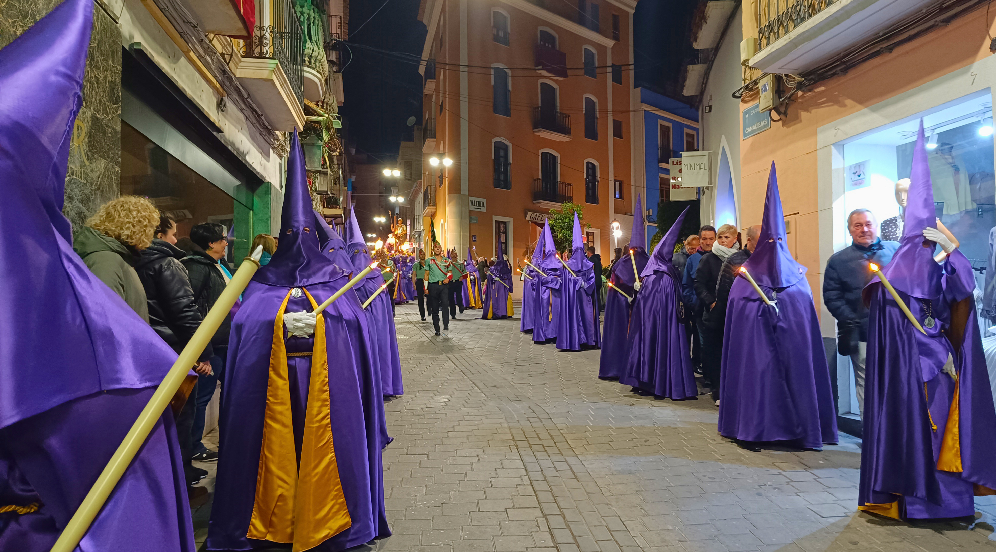 Este traslado es la procesión más antigua de la Semana Santa de Villajoyosa y una de las que congrega a más devotos de la ciudad. Los vecinos acompañaron la imagen a lo largo del recorrido desde el barrio de la Ermita hasta el centro histórico. Junto a los cofrades, procesionó también un grupo de legionarios con marcha marcial, al ritmo de la marcha de procesión “Caridad del Guadalquivir”, interpretada por la Colla Els Valerios y el grupo de metal de la Societat Ateneu Musical.