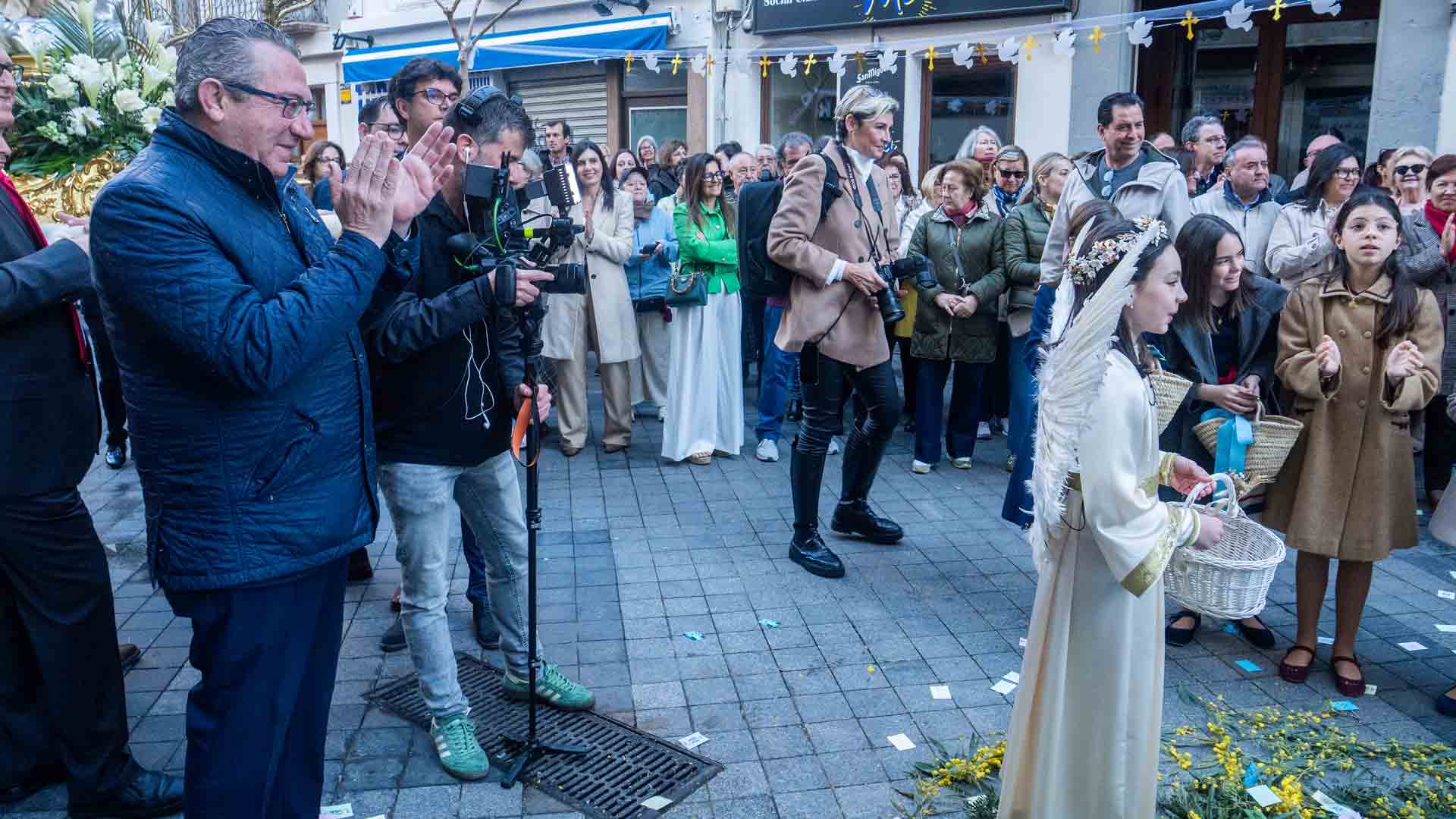 En esta edición, la encargada de representar al ‘angelet’ ha sido la niña Aitana Pérez Gutiérrez, quien ha recitado los versos pascuales ante un público emocionado. Tras la declamación, se ha realizado el reparto de aleluyas entre los asistentes, en un ambiente marcado por la alegría y la participación ciudadana.