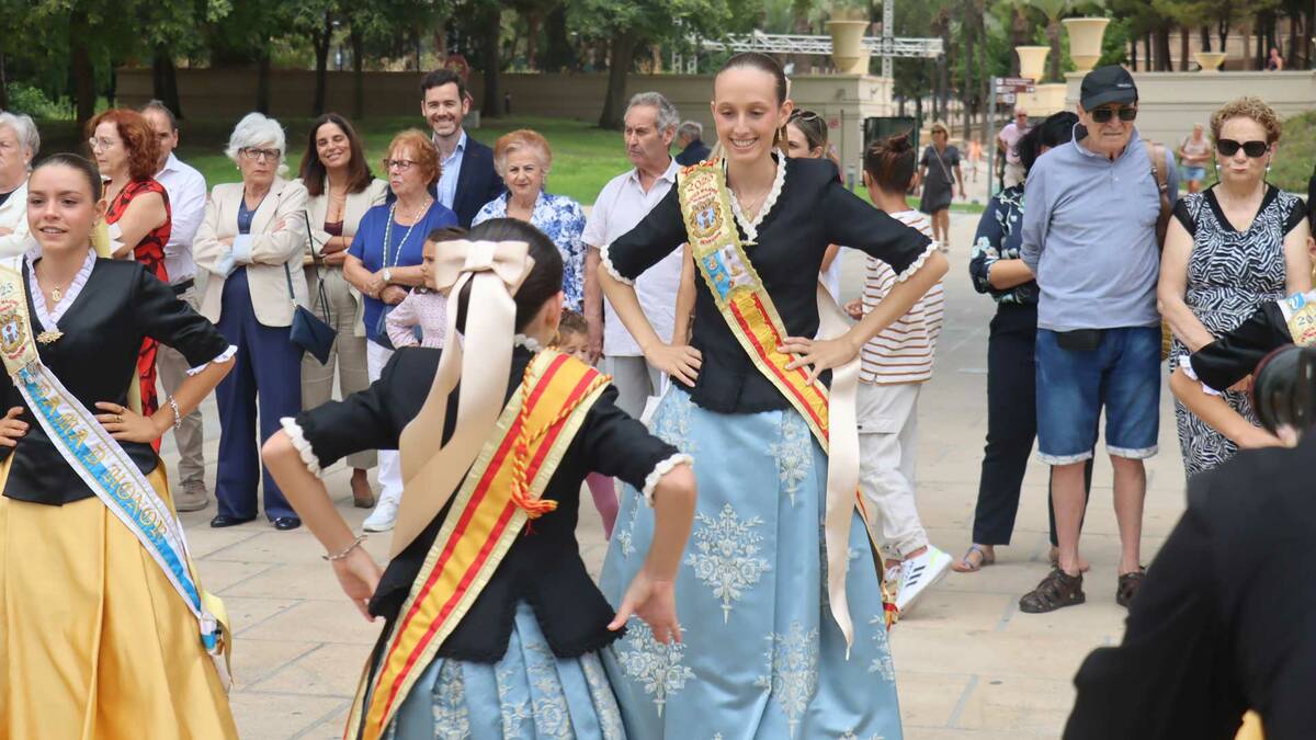 Como cada año, coincidiendo con la celebración del 9 d’octubre, este mediodía ha abierto sus puertas la ‘Fira de Productes Típics de la Terra’, que organiza la Comissió de Festes Majors Patronals y que se desarrolla en el Parque de Elche. El alcalde, Toni Pérez; la concejal de Fiestas, Mariló Cebreros; y las Reinas de les Festes, Paula Pascual y Aitana Pérez, han sido los encargados de cortar la cita inaugural de la Fira. Previamente, y como es tradición en el Dia de la Comunitat Valenciana, las Reinas y sus cortes de honor han interpretado, a ritmo de ‘xirimita i tabalet’, el ‘ball del peuet’ en la plaza de SS MM Los Reyes de España ante la atenta mirada de residentes y turistas. Un tradicional baile que ha tenido lugar justo después de la finalización del pleno institucional del 9 d’Octubre.