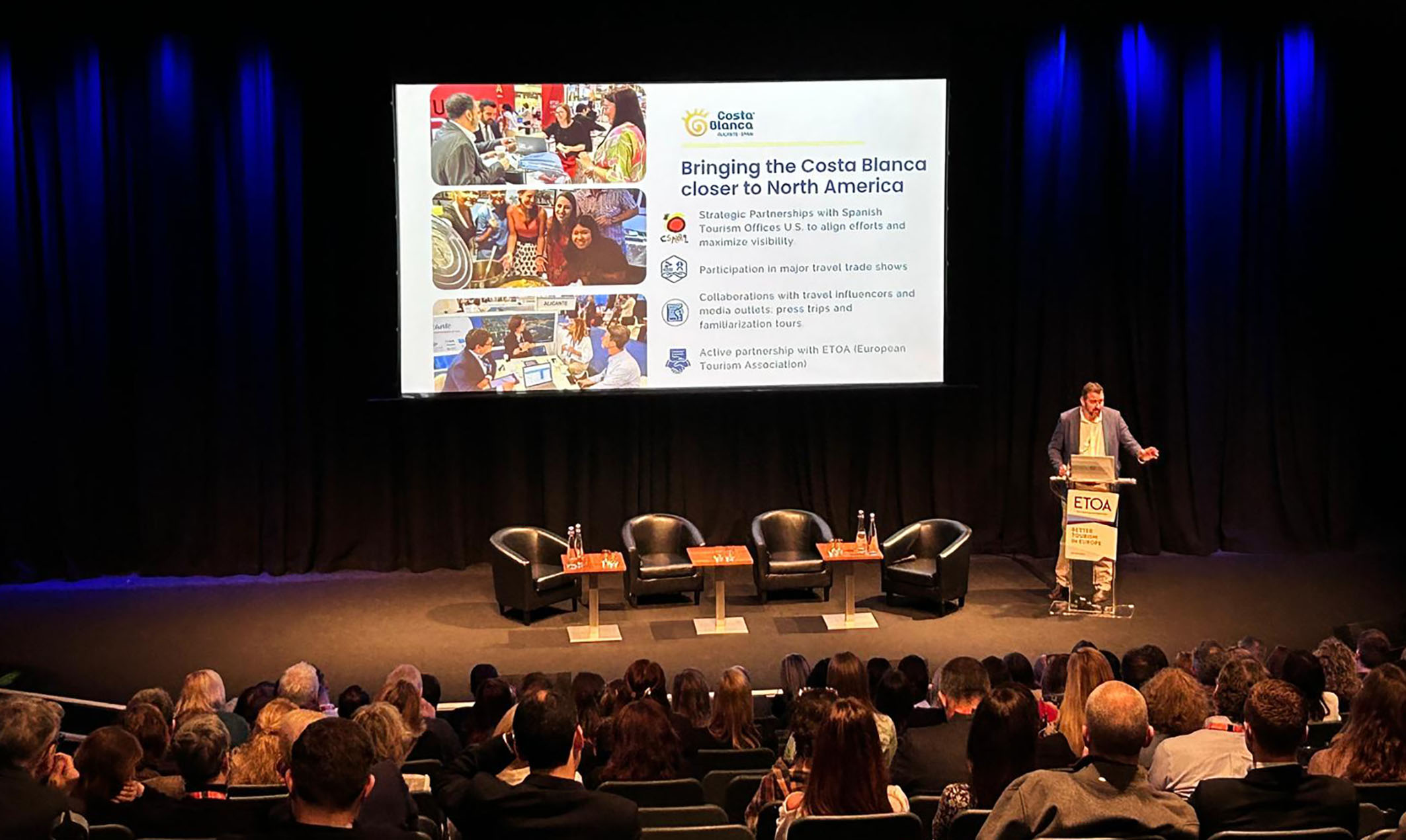 Además, el director del Patronato Provincial de Turismo ha realizado hoy la presentación de ‘Costa Blanca, destino de experiencias’ durante el programa oficial de ETOA. Su intervención ha incluido la proyección del video institucional ‘WoW Costa Blanca’ y ha versado sobre tres ejes estratégicos.