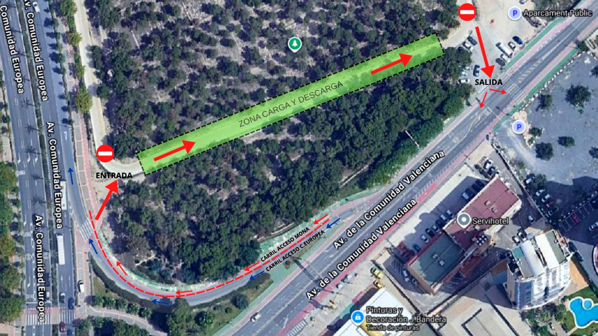 Respecto al estacionamiento, la edil de Fiestas ha recordado que frente al Parque de la Séquia Mare, en la avenida de la Comunidad Valenciana, existe un aparcamiento disuasorio con capacidad para cerca de un centenar de vehículos. También en la calle Italia se localiza otro parking, de unas 300 plazas, conectado con el parque a través de la pasarela peatonal de Els Tolls y por la avenida Comunidad Europea. Además, también está disponible el aparcamiento de la Estación de Autobuses, donde caben más de 350 coches, o el del Palau d’Esports, ubicado también a muy poca distancia de este parque y con gran capacidad, así como los disuasorios del Salt de l’Aigua, que suman otras cerca de 360 plazas.