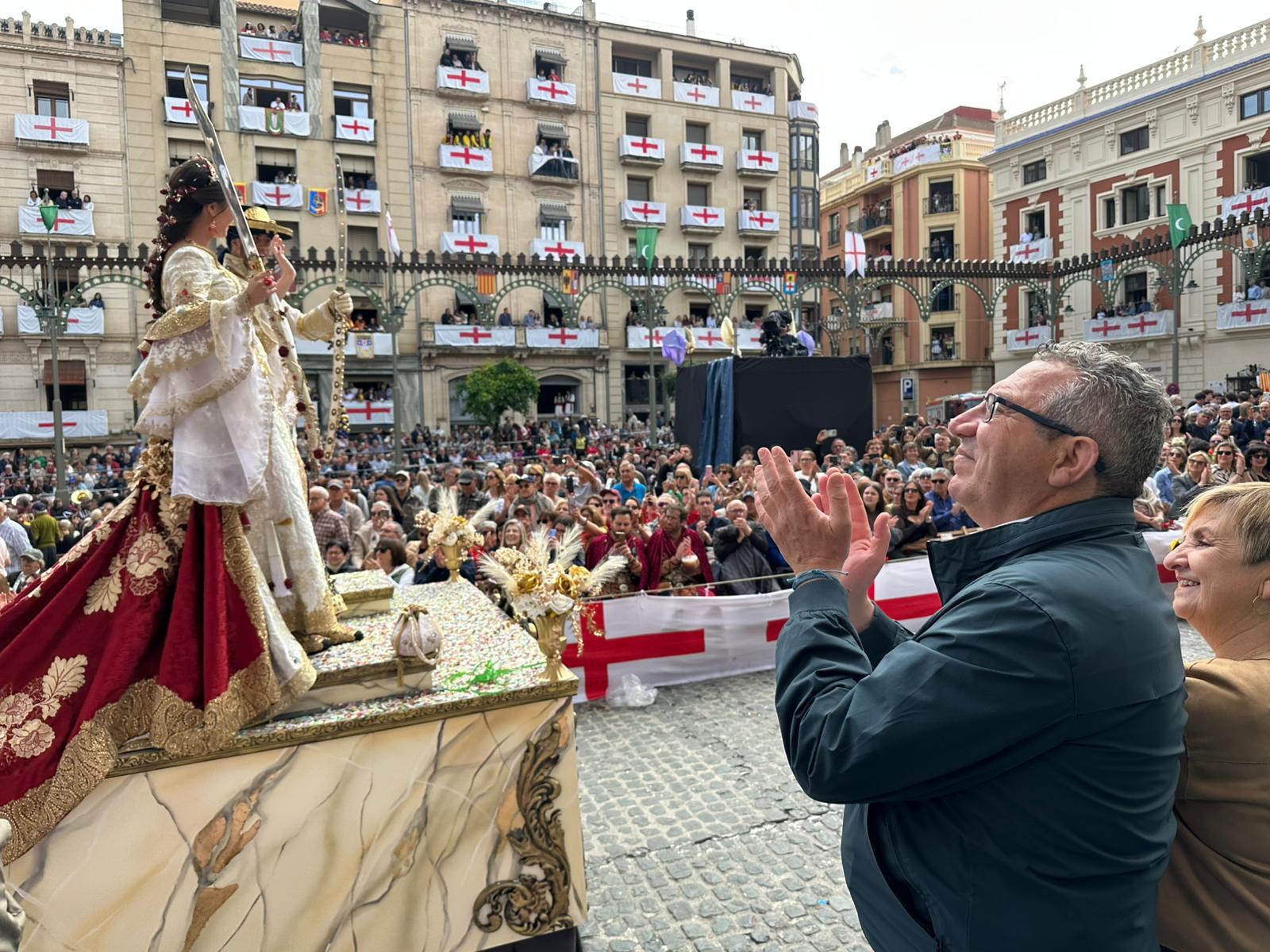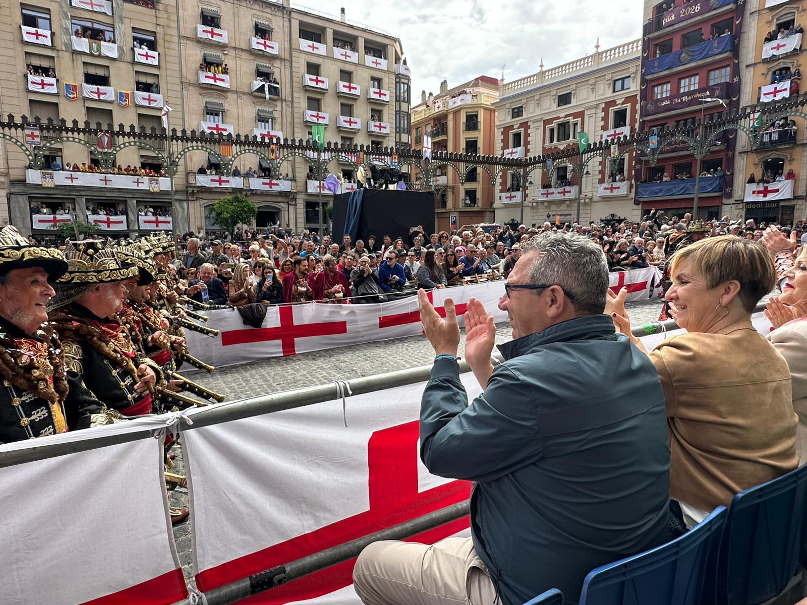 El presidente de la Diputación de Alicante, Toni Pérez, ha asistido esta mañana a la Entrada Cristiana de las Fiestas de Moros y Cristianos de Alcoy, donde ha destacado el compromiso de la institución provincial con esta singular celebración, declarada de Interés Turístico Internacional.