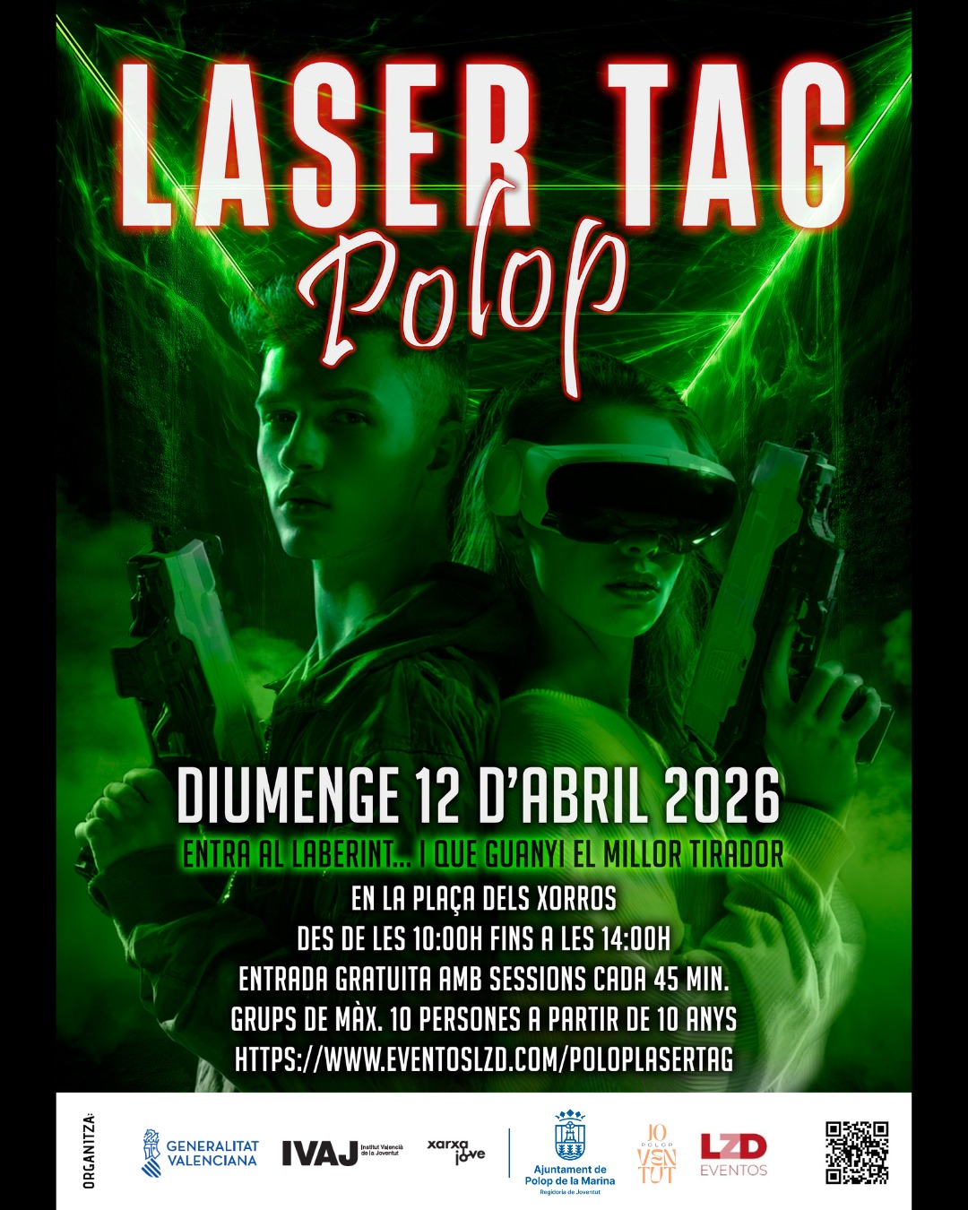 Como cierre de la programación, el domingo 12 de abril se celebrará una de las actividades más esperadas con una mañana de competición de Laser Tag gratuita en la Plaça dels Xorros, en horario de 10:00 a 14:00 horas. Las partidas se organizarán en sesiones de 45 minutos con grupos de hasta 10 personas. Los participantes deberán desenvolverse en un laberinto preparado para la ocasión, donde resultará ganador el mejor tirador. En este caso, la edad mínima para participar será de 10 años.