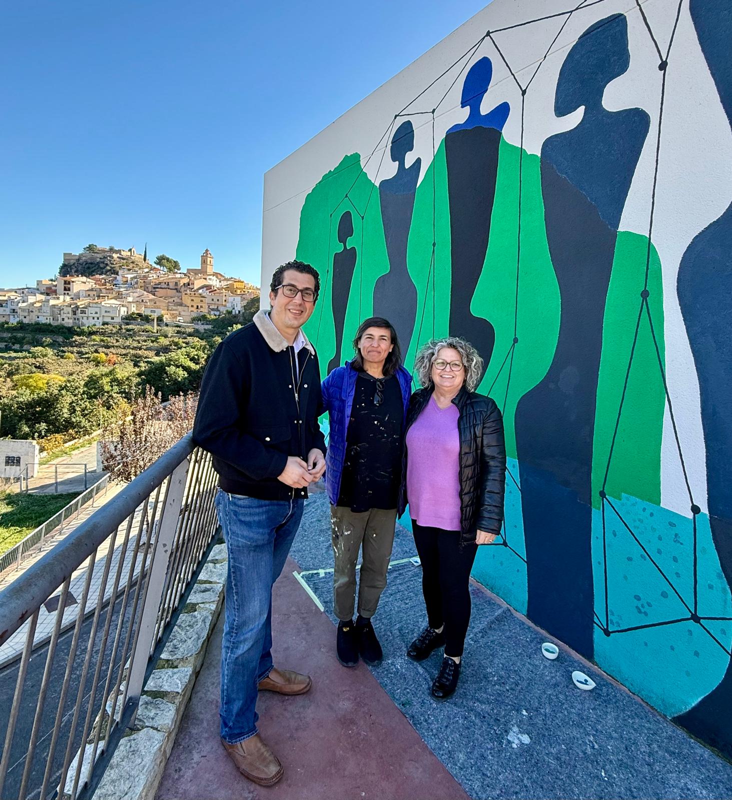 Posteriormente, se ha inaugurado el mural colaborativo “Tejiendo la red”, una obra creada por la artista Olivia Baeza con la participación los escolares que han pintado una serie de puntos que, al unirse, forman una red visual simbolizando el apoyo colectivo, la importancia de acompañar y proteger, y la fuerza de una comunidad unida frente a la violencia. Tanto los niños y niñas como el resto de asistentes han puesto su huella en el mural.