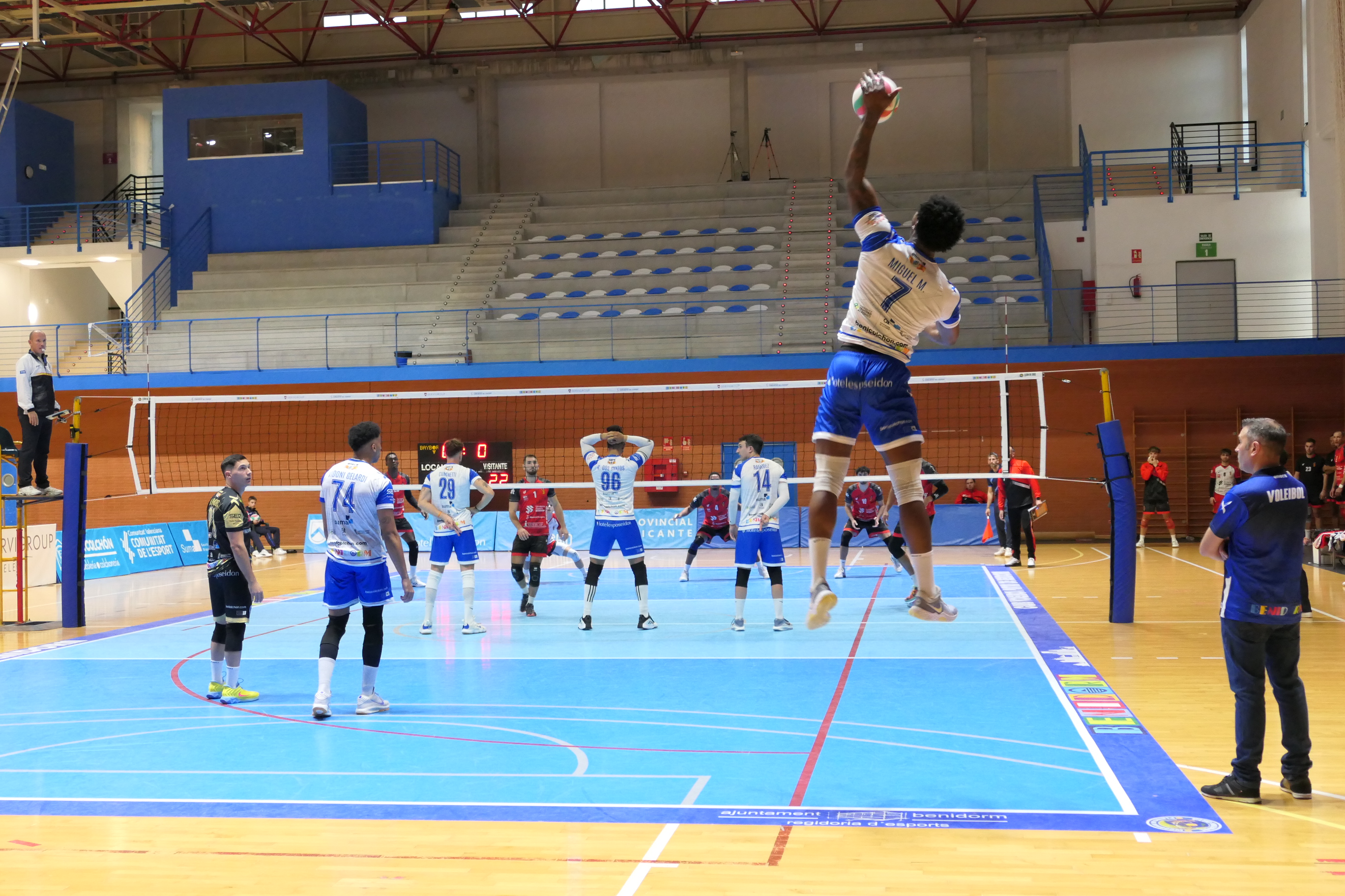 El Palau volvió a presentar un ambiente sensacional, impulsando al equipo en un encuentro clave ante un rival directo. El conjunto benidormense firmó una actuación muy sólida tras un inicio titubeante, dominando los tres últimos parciales con claridad y mostrando una gran evolución en todas las facetas del juego.
