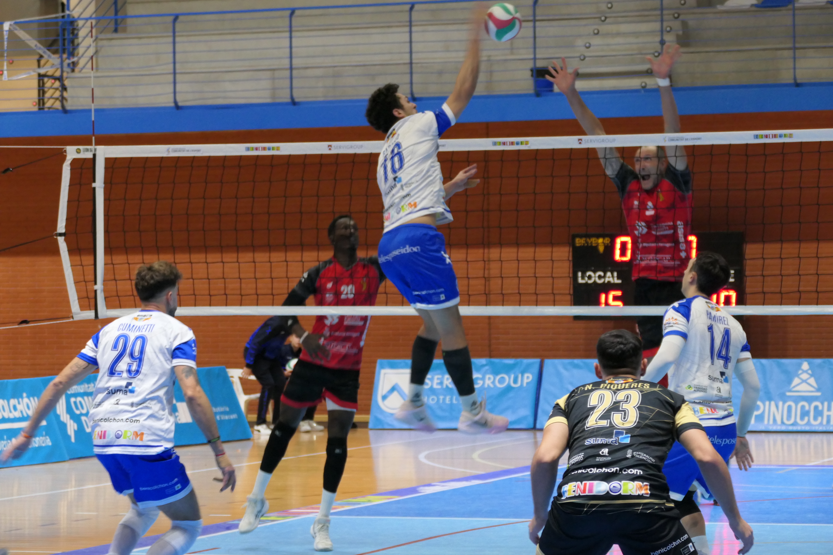 La entrada puntual de Ramón González por la lesión momentánea de Sergio Ramírez no alteró la dinámica del set. El cuadro catalán llegó a dominar por 6 puntos (13-19) y, aunque el Servigroup Benidorm reaccionó en el tramo final (20-22, con un saque directo de Miguel Ángel Martínez que obligó al tiempo muerto visitante), no fue suficiente. El parcial cayó del lado catalán por 22-25.