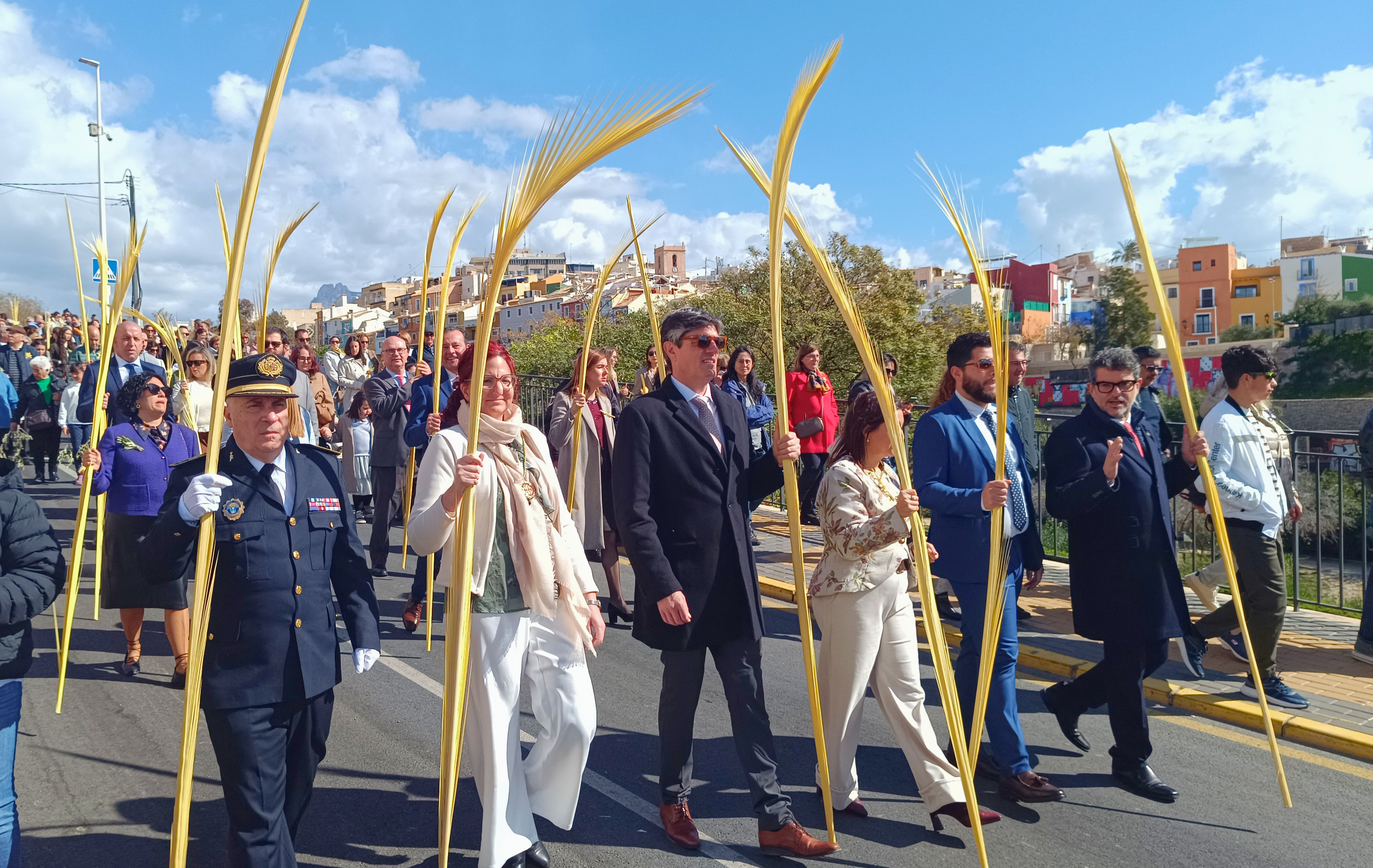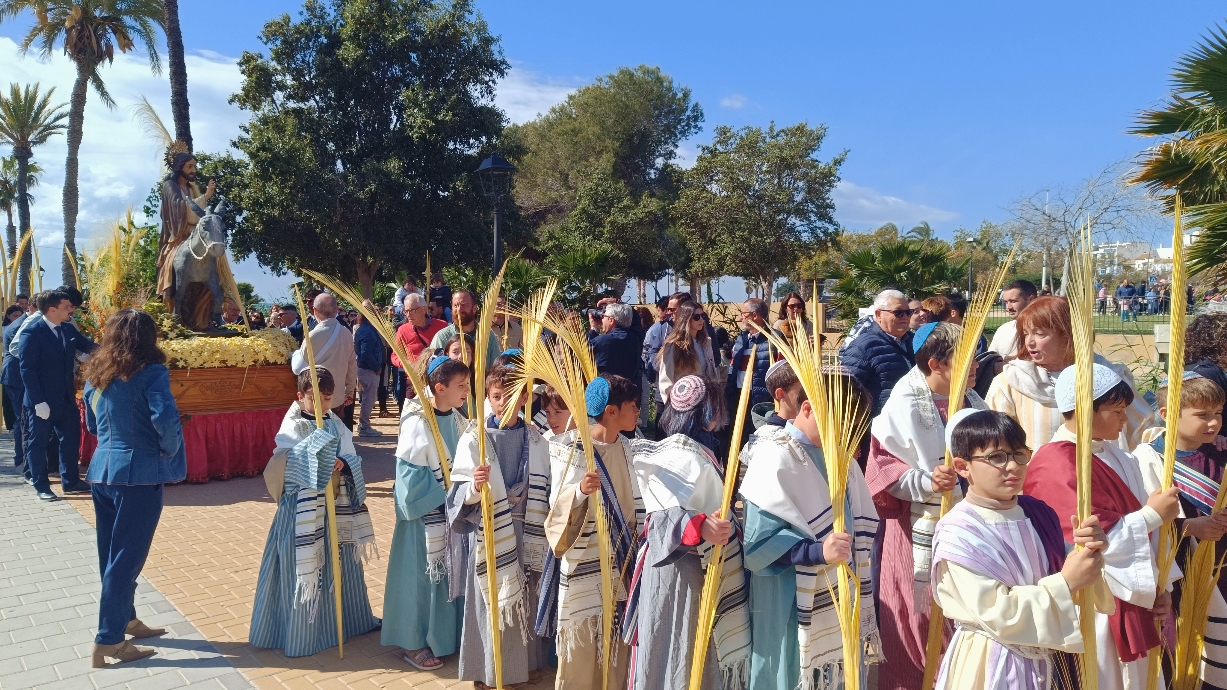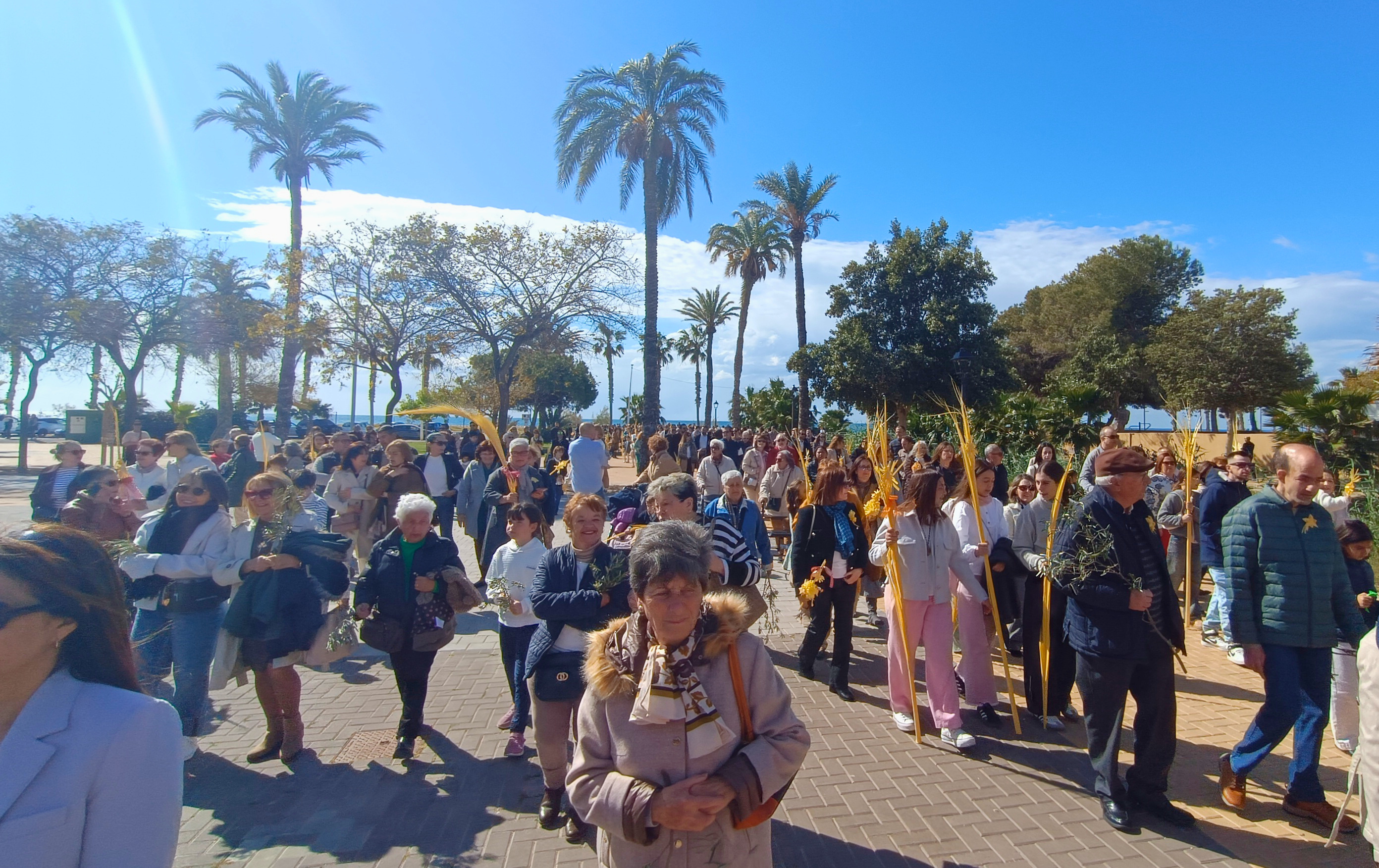 La procesión de Domingo de Ramos ha recorrido las calles Alicante, Pelayo, el parque del Arsenal, y las calles del barrio histórico, Sant Pere, Sant Cristòfol, Santa Marta, Costereta y Mayor, hasta llegar a la plaza de la iglesia. A continuación, se ha oficiado la misa solemne de Domingo de Ramos en la parroquia de Nuestra Señora de la Asunción.