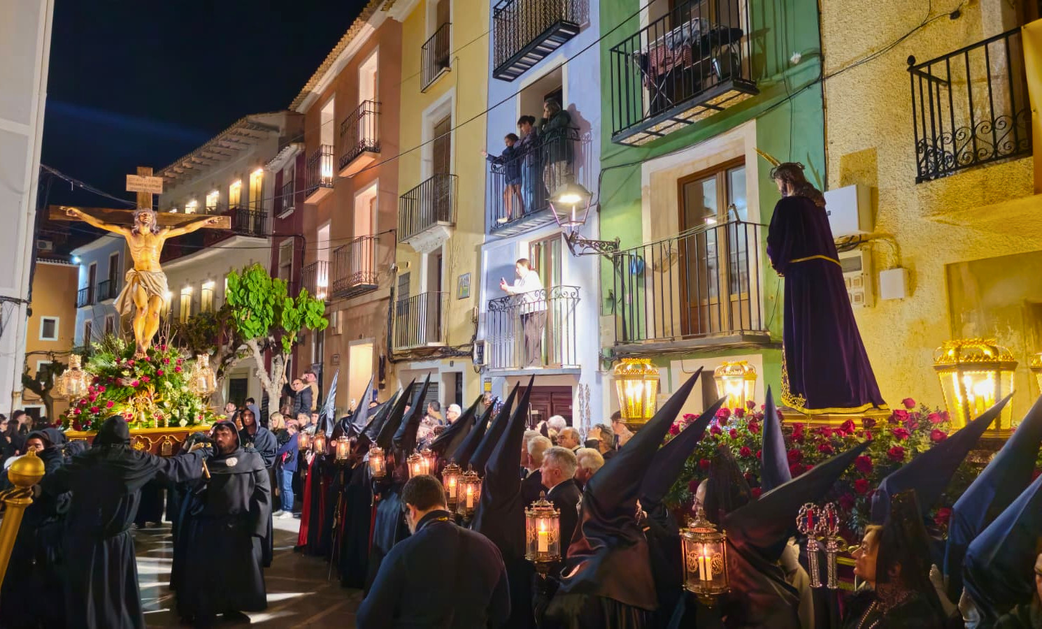 Villajoyosa ha vivido este viernes la pasión y el fervor de la Semana Santa en sus calles con la solemne procesión del Santo Entierro. La noche del Viernes Santo se ha vestido de luto y respeto al paso de cada una de las imágenes.